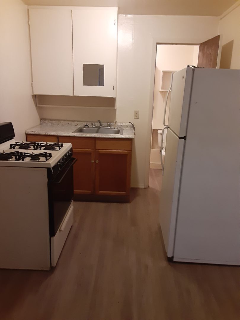 STUDIO 1 BATH APARTMENT: Newer flooring through-out, dual pane windows, wall air conditioner in living room. Peaceful patio area and close to the river. Gas stove and forced air heat. Water, Sewer and Garbage are paid. NO PETS.